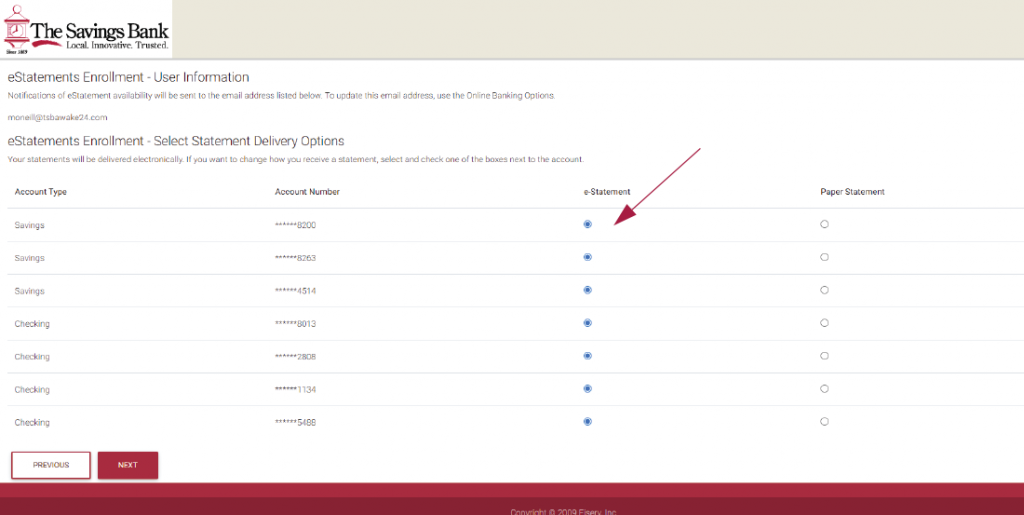 Choose which account you want eStatements turned on by selecting the eStatement button.