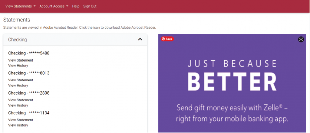 Click on the “Manage Statements” and a new window will open to the eStatement site.